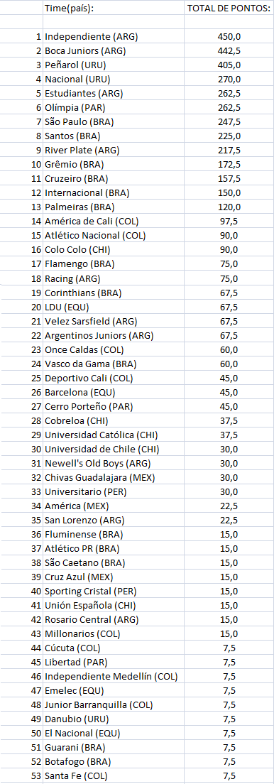 RANKING PELEJAS / LIBERTADORES DA AMÉRICA