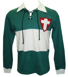 Somente em 1918 a camisa do Palmeiras passou a ser toda verde com o escudo bordado em branco e o triângulo virou um circulo, as golas e punhos também eram brancos. E ficou dessa forma até 1942, quando o Brasil entrou na segunda guerra, e o clube teve que mudar de nome, foi batizado como Palmeiras. As cores ainda ficaram a mesma e o escudo era apenas “P”.