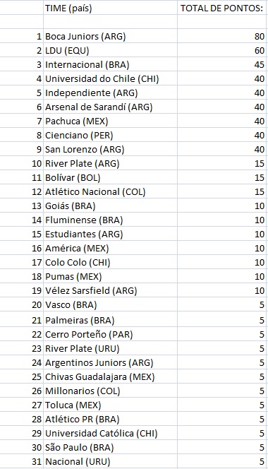 RANKING PELEJAS / COPA SUL-AMERICANA