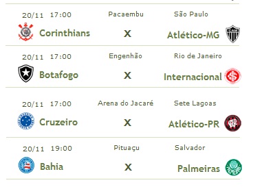 - prazo máximo para deixar o seu palpite: 17h (horário de Brasília) do dia 20 de novembro de 2011.